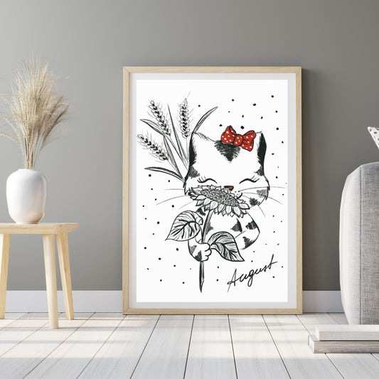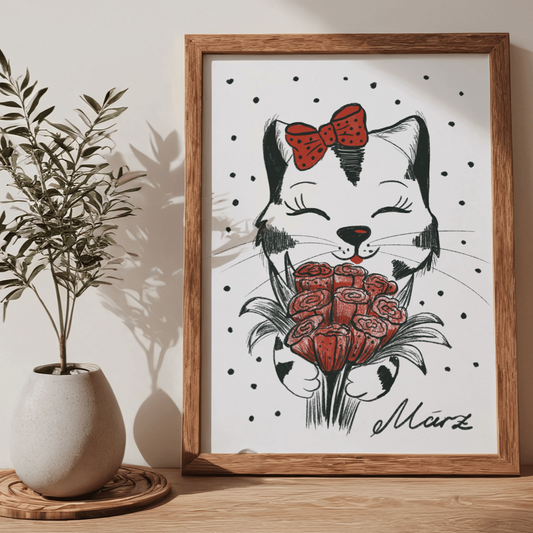 Poster Katze März Tier, Geschenk Katze Kunst Schwarz-Weiß Wand Dekor Poster, Druck Digital Download