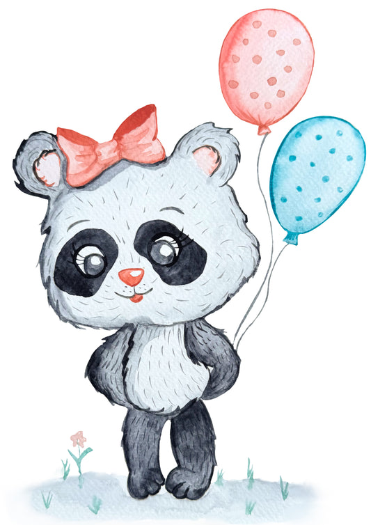 Poster süßer Panda, Geschenk Panda mit Luftballons Kunst Aquarell Wand Dekor Poster, Druck Digital Download