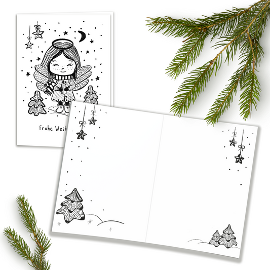 Weihnachtskarte "Engel mit Rentier"- auch zum Ausmalen