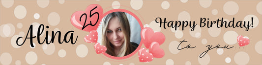 Banner zum Geburtstag 200x50cm - personalisiert- beige mit Herz