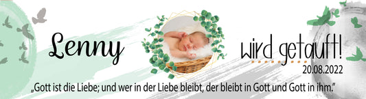 Banner für Taufe individuell mit Foto und Name + Wunschtext