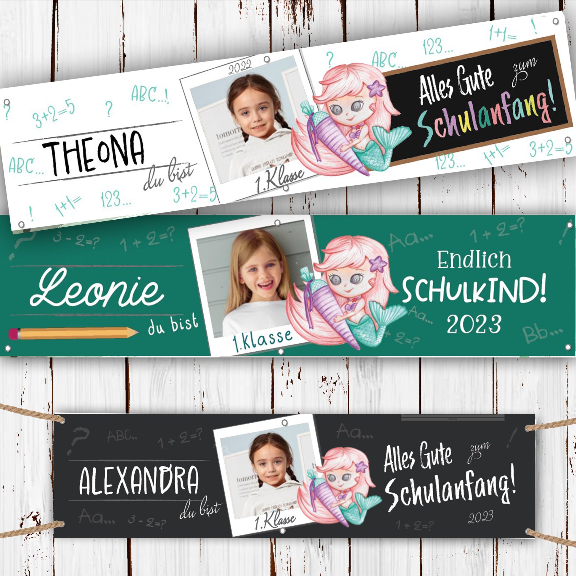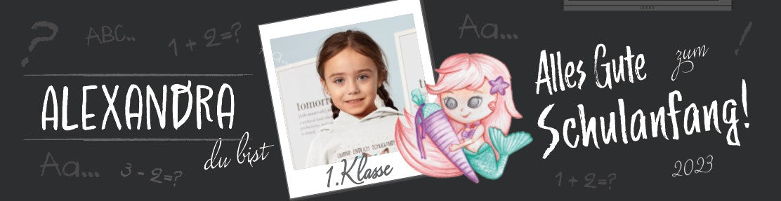 Willkommen zum Schulanfang! Zeigen SIE Ihren Stolz mit einem personalisierten Banner, der das Foto den Namen Ihres Kindes zeigt. Dieser spezielle Tag wird für immer in Erinnerung bleiben und mit unserem Banner wird es noch unvergesslicher.