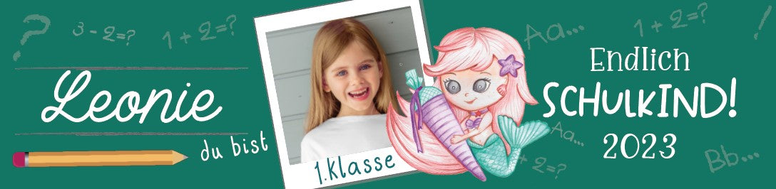 Banner Einschulung mit Foto 200x50cm Motiv- Meerjungfrau