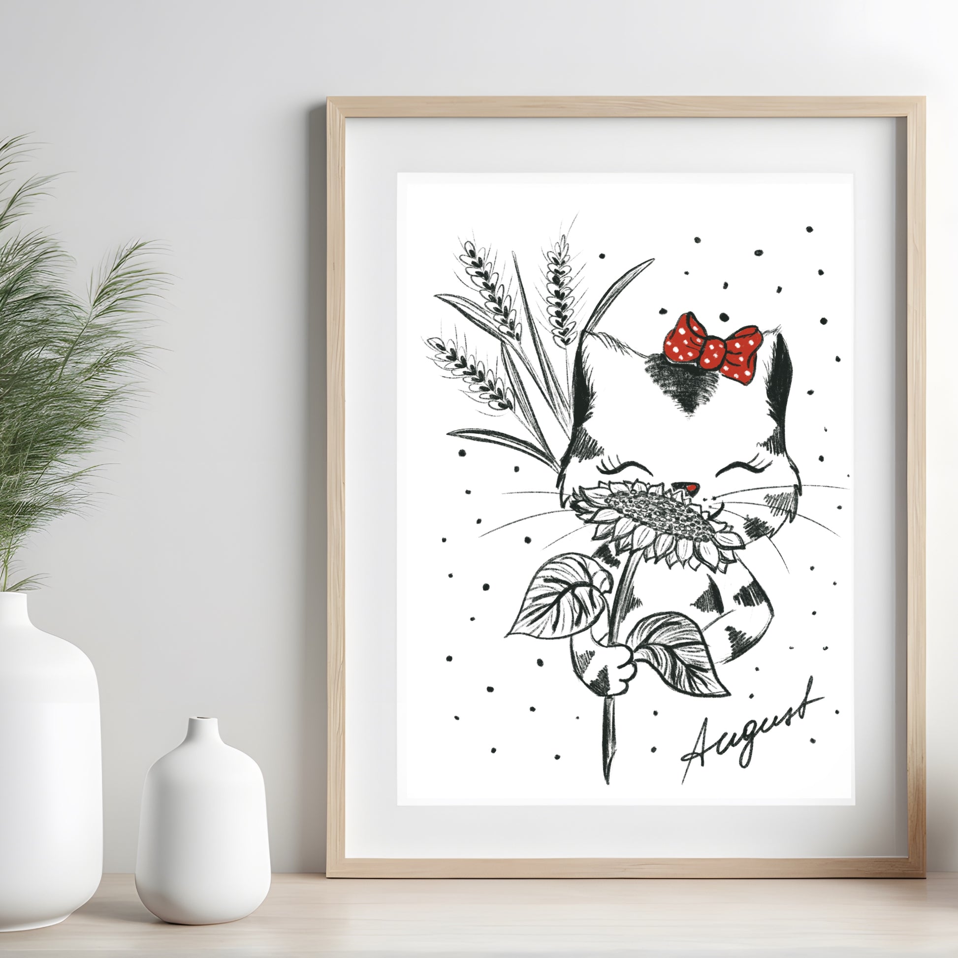 Dieses Poster mit einer Katze und einer Sonnenblume bringt sofort gute Laune in jedes Zimmer. Das schwarz-weiße Design mit einem roten Akzent ist simpel und doch auffällig. Perfekt zum Downloaden und als Geschenk oder Wanddekor geeignet. Holen Sie sich jetzt diese einzigartige Katzenkunst!Dieses digitale Poster zum Download zeigt eine edle Schwarz-Weiß-Darstellung von Katzen, umgeben von lebendigen roten Sonnenblumen. Perfekt als Wanddekoration oder ein Geschenk für Katzenliebhaber im Monat August. Ein stilvolles Kunstwerk, um jedem Raum einen Hauch von Eleganz zu verleihen.Wie sieht dein perfekter Monat März aus? Vielleicht mit einem wunderschönen Strauß aus roten Tulpen. Hier kommt ein süßer Poster mit einer liebevollen Katze in Schwarz-Weiß. Mit roten Akzenten.
